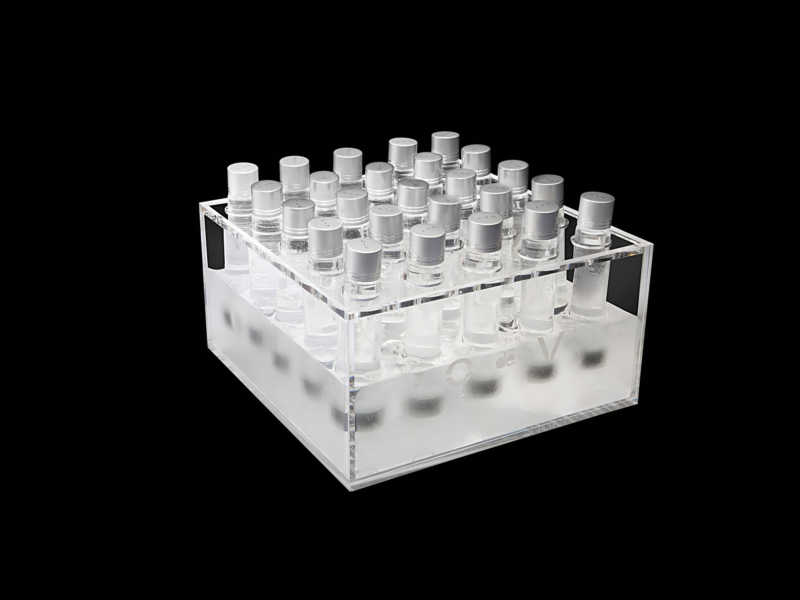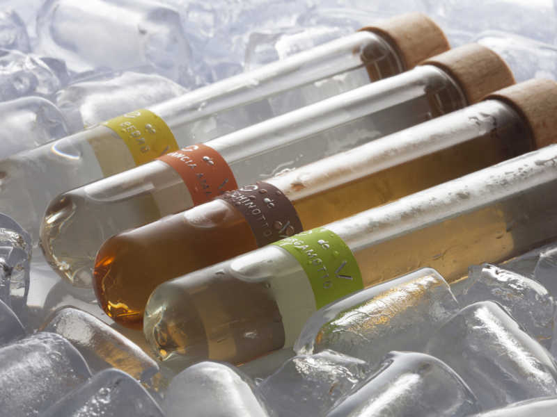 I sigari di EVO hanno “aperto la via”, ma i sigari di O de V “sono la via”. Riuscite ad immaginare un formato che meglio del “sigaro” di O de V possa rendere gioco, piacere, glamour una porzione di Vodka? Come mantenerne al meglio la temperatura ideale? Come misurarne meglio la quantità? Come rendere più giocosa la condivisione? A mio parere in nessun altro modo. Per essi ho quindi disegnato gli appositi – originali ed eleganti – porta ghiaccio. I sigari di O de V sono provette in vetro mono dose (5 cl.) commercializzate in confezioni da 36 e 100 pezzi.