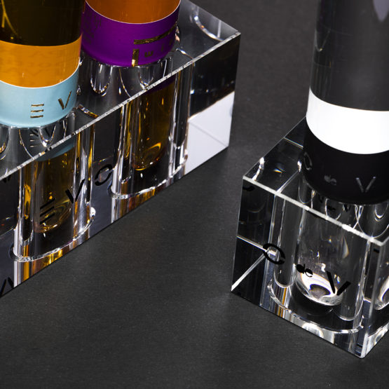 la versione cristallo dei nostri elementi di servizio, formati disponibili da 1 o da 3 sigari, interamente Preziosi ed eleganti, perfetti per ogni arredamento, un idea chic per portare al tavolo una versione scomposta di un Gin tonic o nella versione da tre con i distillati scuri per un percorso tra i sapori e i profumi della linea EVO.